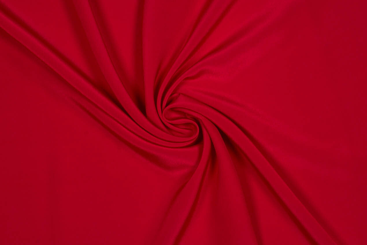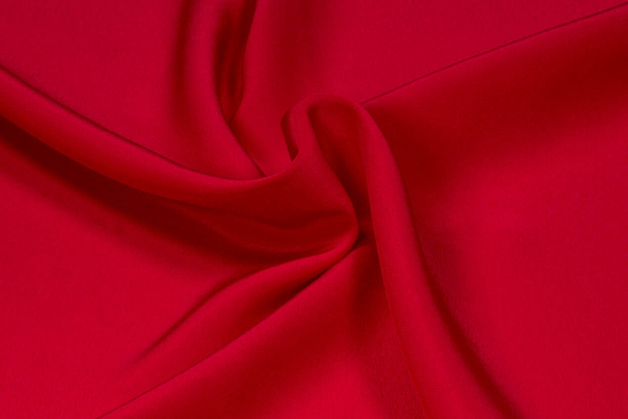 Ein schöner, flüssiger Kreppstoff aus Maulbeerseide in karminrot mit mattem Glanz. Crêpe de Chine Seide ist bekannt für seine außergewöhnliche Geschmeidigkeit – er drapiert wunderbar – und seine typische, leicht kieselige Struktur. Perfekt für elegante Blusen, wogende Röcke, Abendkleider und Brautkleider.